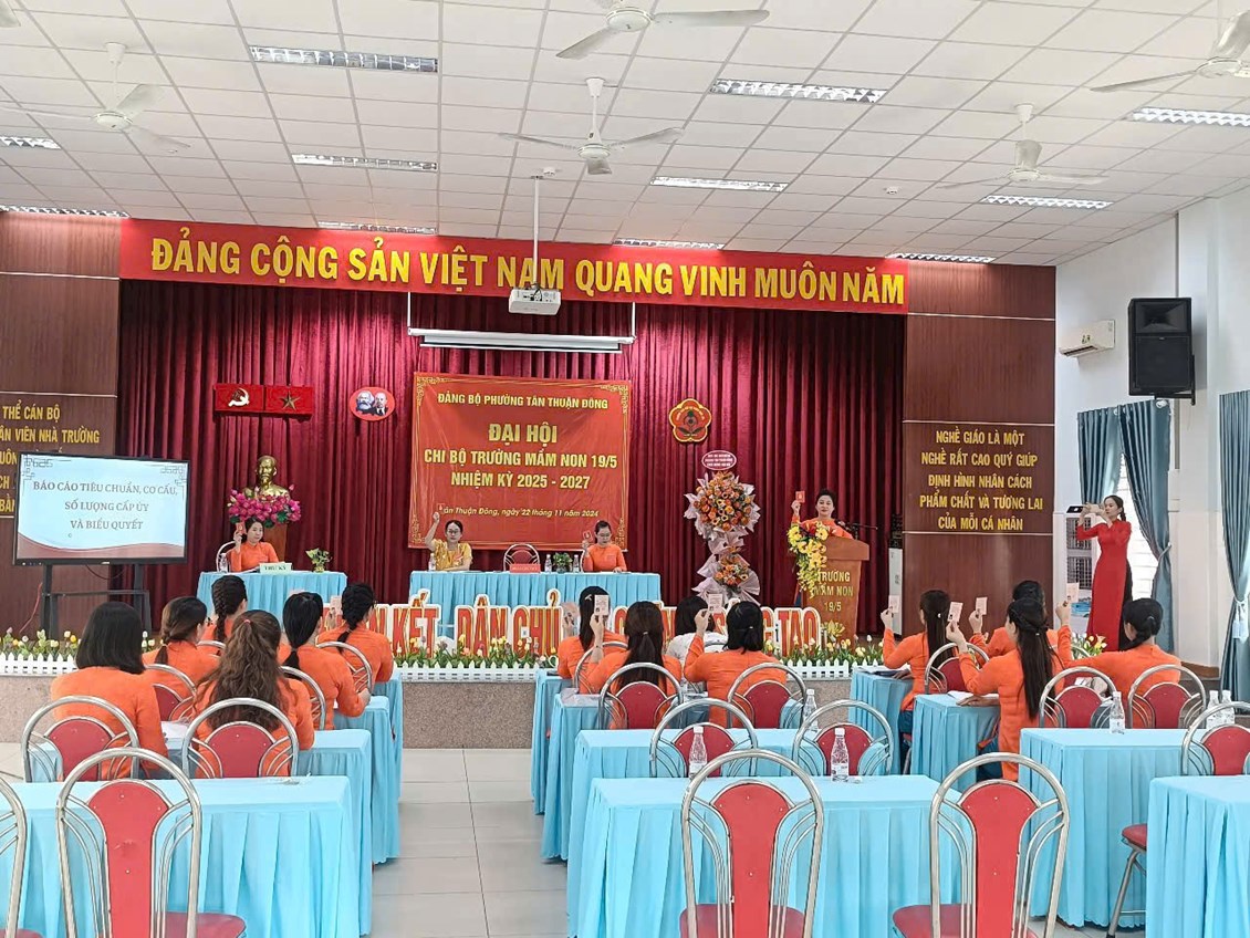Trong nhiệm kỳ 2022-2025, Chi bộ trường mầm non 19/5 đã phát huy trí tuệ, đoàn kết để khắc phục khó khăn, góp phần hoàn thành xuất sắc 100% nhiệm vụ và chỉ tiêu mà Nghị quyết Đại hội nhiệm kỳ 2022-2025 đã đề ra. Mỗi đảng viên đều nêu cao tinh thần trách nhiệm, là nòng cốt, nhân tố tích cực trong tham mưu thực hiện các nhiệm vụ chính trị, công tác xây dựng Đảng các phong trào thi đua khác do cơ quan, đơn vị phát động. Trên cơ sở đó, với tinh thần đoàn kết, trí tuệ, năng động, hiệu quả Đại hội biểu quyết với tỷ lệ 100% thống nhất thông qua Dự thảo Báo cáo tổng kết nhiệm kỳ 2022-2025, phương hướng nhiệm vụ nhiệm kỳ 2025-2027; Báo cáo kiểm điểm vai trò lãnh đạo, điều hành của Bí thư, Phó Bí thư Chi bộ nhiệm kỳ 2022-2025. Đồng thời, Đại hội đã biểu quyết nhất trí 100% thông qua Nghị quyết Đại hội với các chỉ tiêu chủ yếu trong nhiệm kỳ 2025-2027