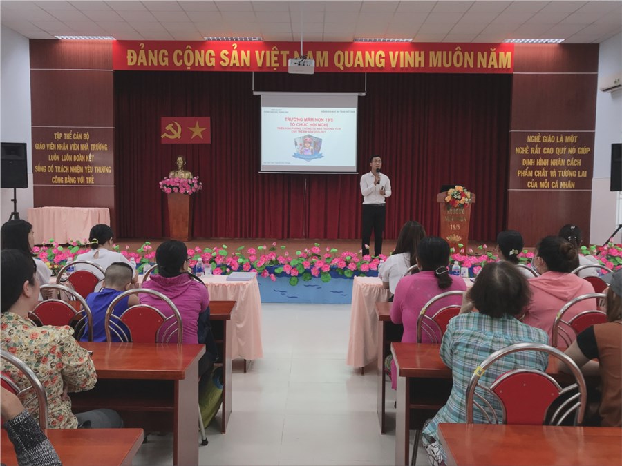 Vào ngày 6 tháng 11 năm 2020, được sự cho phép của Sở giáo dục và đào tạo, Phòng giáo dục và đào tạo quận 7, trường mầm non 19/5 đã tổ chức Hội nghị triển khai phòng chống tai nạn thương tích cho trẻ em năm 2020-2021. Báo cáo viên : Nguyễn Đức Thuận. Với các hoạt động: